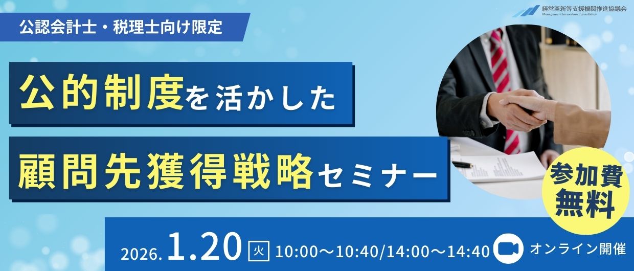 『補助金・公的制度』『金融・財務』『事業承継』のほか、事務所の経営ノウハウを学ぶ『事務所力強化』コースの全4コースがあります。