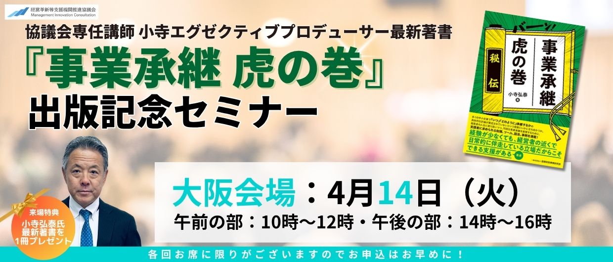 【大阪会場】協議会専任講師 小寺エグゼクティブプロデューサー最新著書 「事業承継 虎の巻」出版記念セミナー