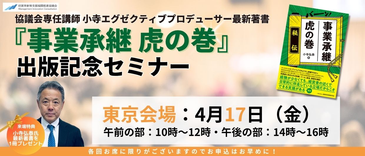 【東京会場】協議会専任講師 小寺エグゼクティブプロデューサー最新著書 「事業承継 虎の巻」出版記念セミナー